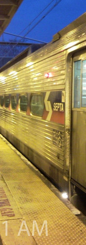 Como un ejemplo, he aquí la viajadera (“commute”) de ida y vuelta al trabajo en Philadelphia, que me toma cuatro horas cada día. Las fotos se tomaron al día siguiente de una de las muchas nevadas de enero de 2011, que afortunadamente no resultó muy fuerte. La hora marcada en cada foto es real, y me recuerda la historia que leí en Time hace unos días, sobre alguien con un defecto de memoria de corto plazo que necesita tomar constantemente fotos de lo que hace, para que, al mirarlas, al final del día, pueda reconstruirlo, y reconstruirse a si misma. Escalofriante, ¿no?